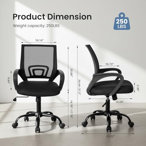 DUMOS Office Chair – Ergonomic Mid Back Mesh Desk Chair with Lumbar Support & Rocking Mode, Height Adjustable with Fixed Armrest, Computer, Gaming, Conference, 360° Swivel, Black
