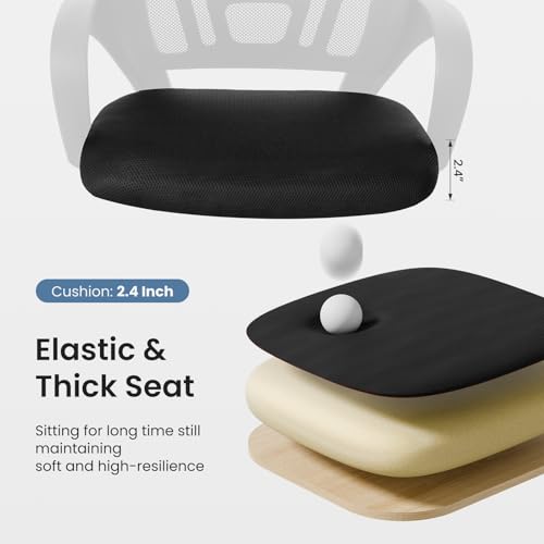 【Comfort Ergonomic Design】DUMOS features a scientifically contoured mid-back design and lumbar support that precisely fits the natural curve of your spine, relieve the soreness in your back and waist. The breathable mesh back promotes air circulation, keeping you cool and focused during long work hours, while the high-resilience foam seat cushion provides cloud-like comfort without sunken.