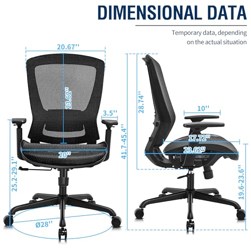ELABEST Mesh Office Chair,Ergonomic Computer Desk Chair,Sturdy Task Chair- Adjustable Lumbar Support & Armrests,Tilt Function,Comfort Wide Seat,Swivel Home Office Chair (Black)