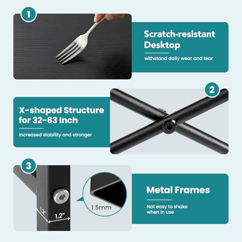 OLIXIS 47 Inch Home Office Desk, Small Computer Work Table with X-Shaped Reinforcement, Home Simple Modern Writing Study Table, Black