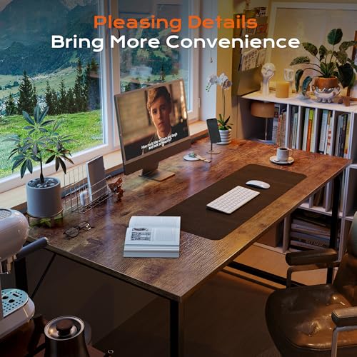 PRAISUN 47 X 24 Inch Computer Desk with Deeper Desktop, Gaming Office Writing Work Desk for Home Office, Study, Bedroom, Work from Home, Metal Frame, Rustic Brown