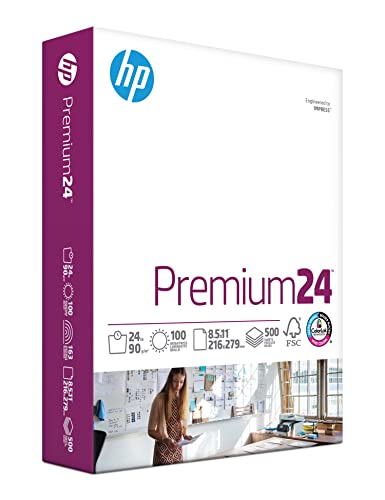 HP Printer Paper | 8.5 x 11 Paper | Premium 24 lb | 1 Ream – 500 Sheets | 100 Bright | Made in USA – FSC Certified | 112400R