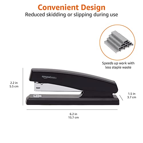 Amazon Basics Desktop Office Stapler, Lightweight, 25 Sheet Capacity, Non-Slip, Black, 3-Pack with 1000 Staples