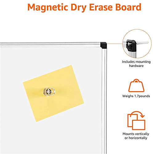 Amazon Basics Magnetic Dry Erase Whiteboard, 24″ x 18″, Aluminum Frame, Silver/White, Presentation Board for Writing Notes