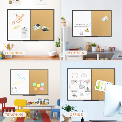 SMOOTH & ROBUST MAGNETIC PERFORMANCE: Combination board has two sides. Magnetic surface of the combination white board is easy for writing, drawing and learning. The cork surface of the combination board is easy to put notes, pages, documents, photos, graphs and cards on.