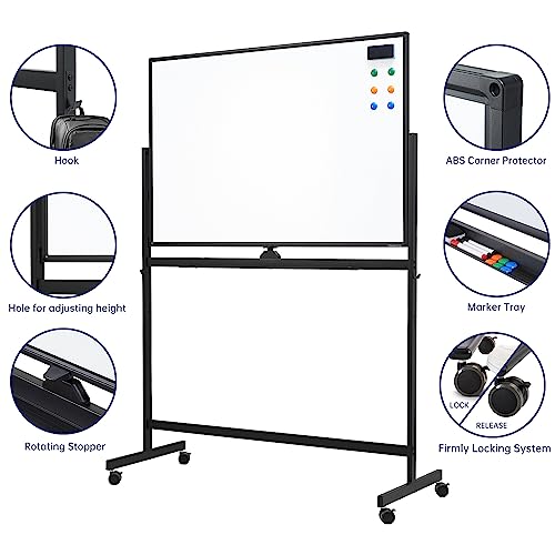 TSJ OFFICE Large Rolling Whiteboard – Dry Erase Magnetic 48 x 32 Inches White Board Height Adjust Double Sides Mobile Portable Easel on Wheels, Dry Erase Board with Stand for Office, Home & Classroom