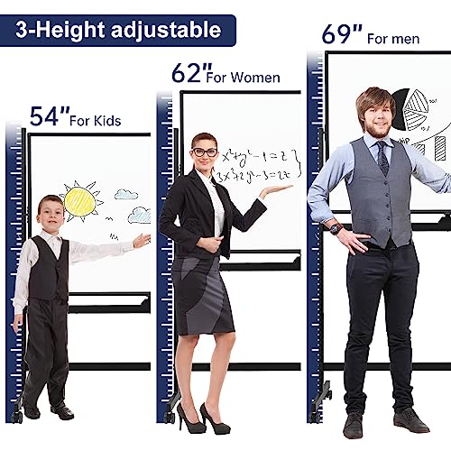 HEIGHT ADJUSTABLE – The height-adjustable whiteboard allows users to adjust the height of the whiteboard according to their specific needs, which can meet the needs of sitting or standing, ideal for classrooms, conference rooms, and homes.