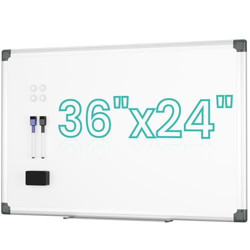 VUSIGN Magnetic Dry Erase Board for Wall, 36″ x 24″ Hanging Whiteboard for Office, School, Home, Includes Eraser, Markers, Magnets, Pen Tray, Silver Aluminum Frame White Board